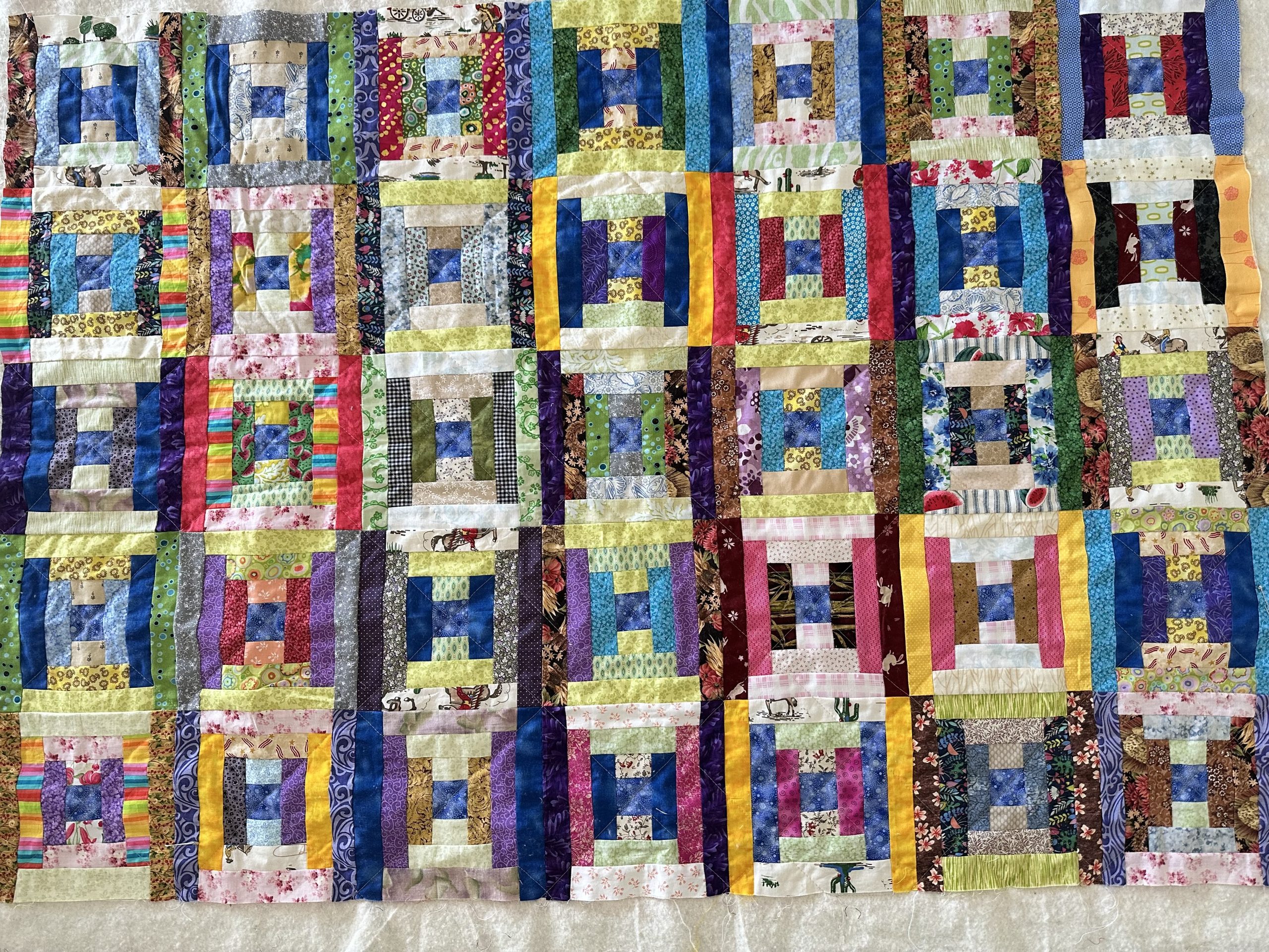 What a beautiful scrappy quilt. I like to straight line quilt using seam intersections as guides, too. It worked perfectly for this quilt!